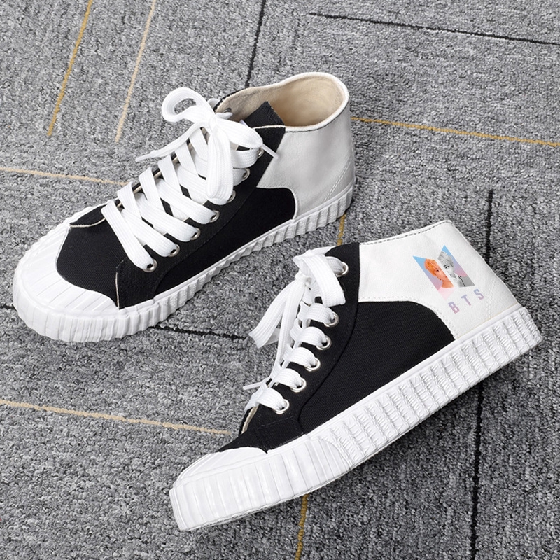 Sepatu Sneakers Desain Kpop Bts Bahan Kanvas Warna Hitam Putih Untuk Wanita Shopee Indonesia