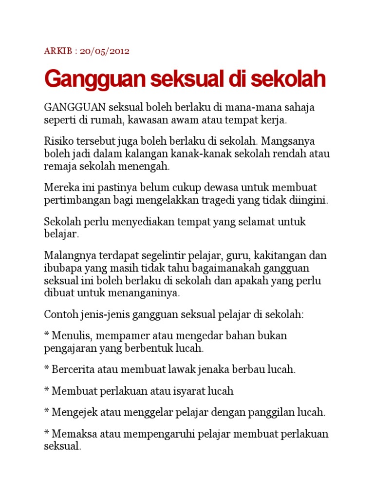 Kes Gangguan Seksual 2015 Makin Meningkat