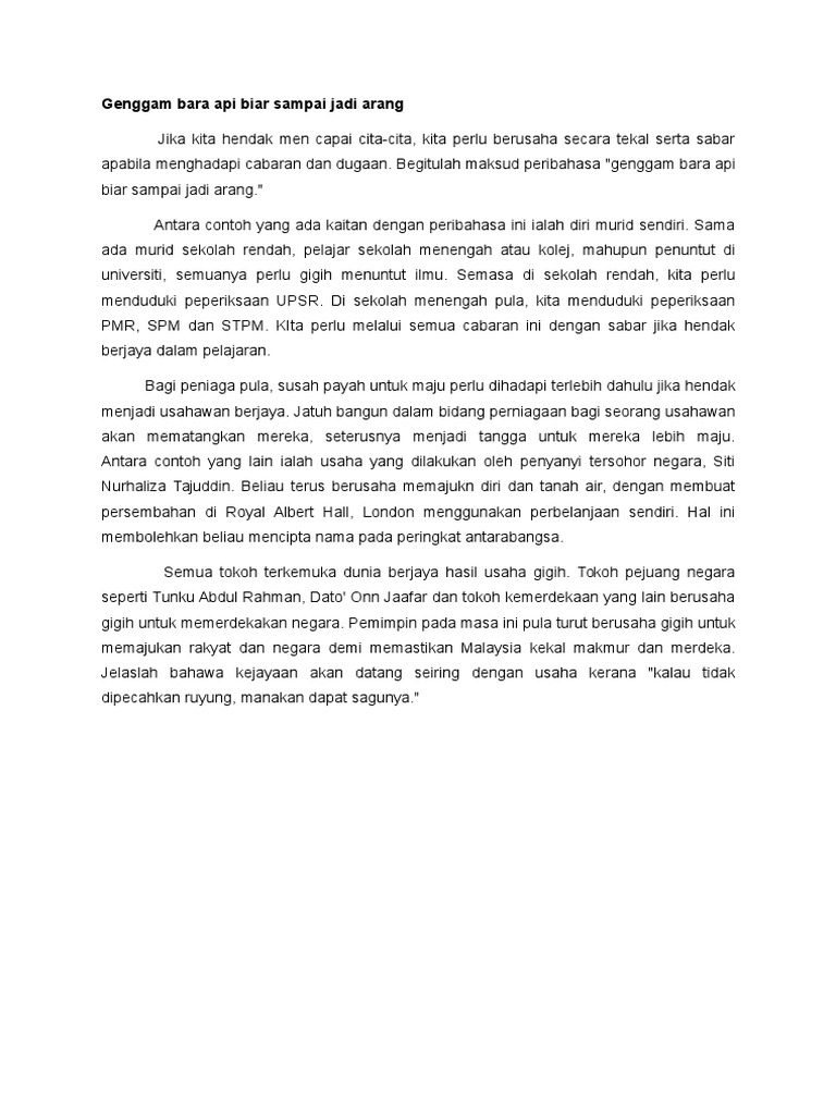 Contoh Ayat Genggam Bara Api Biar Sampai Jadi Arang