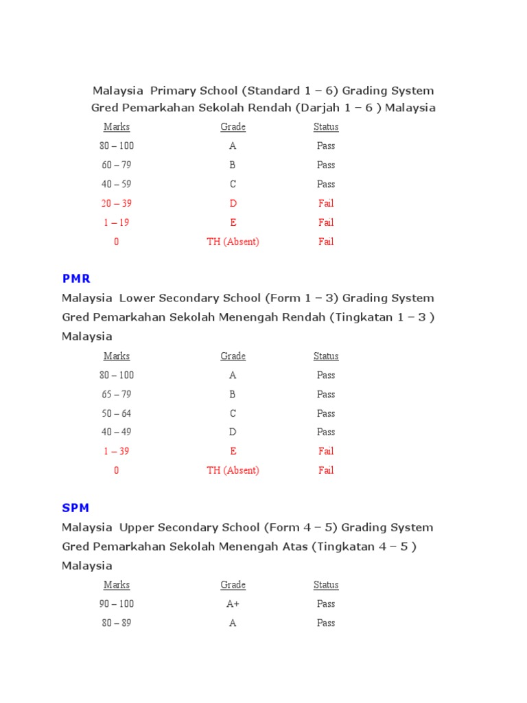Gred Pemarkahan Peperiksaan Upsr Pmr Spm Stpm