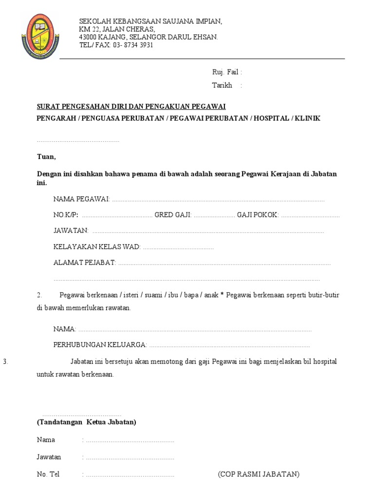 Contoh Surat Rasmi Hospital Kerajaan Surat Rasmi T