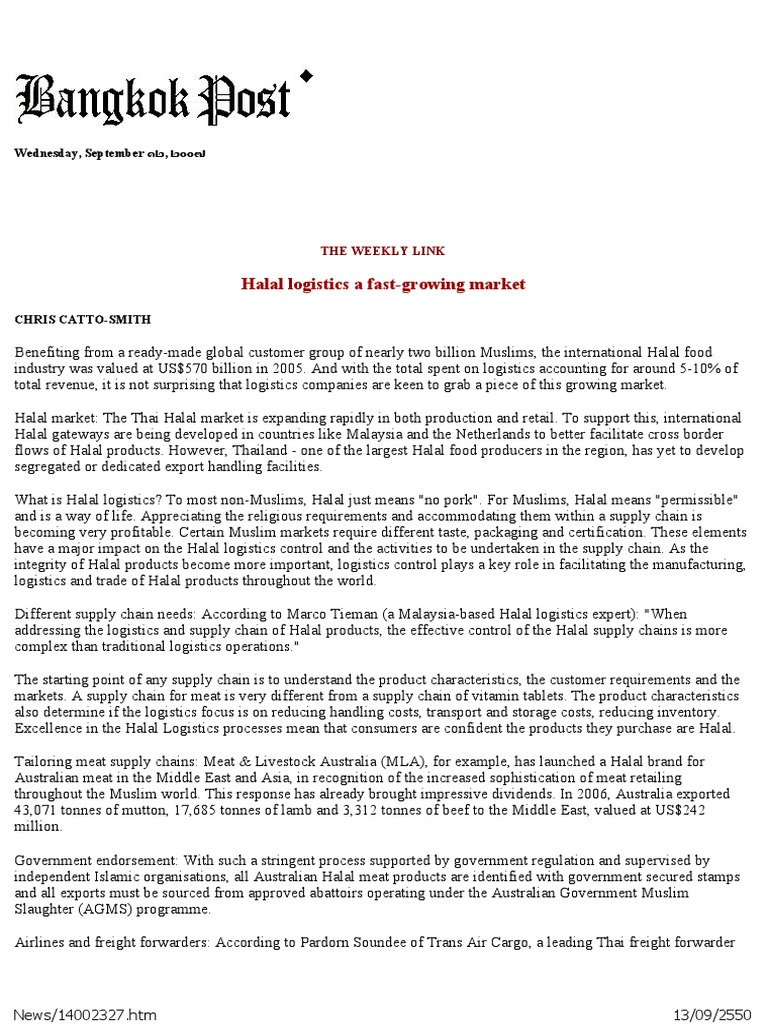 Halal Logistics A Fast Growing Market Pdf Logistics Supply Chain