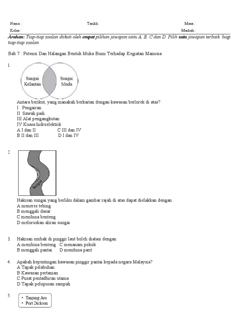 48858222 Latihan Geo Ting 1 Unit 7 Potensi Dan Halangan Bentuk Muka Bumi Terhadap Kegiatan Manusia