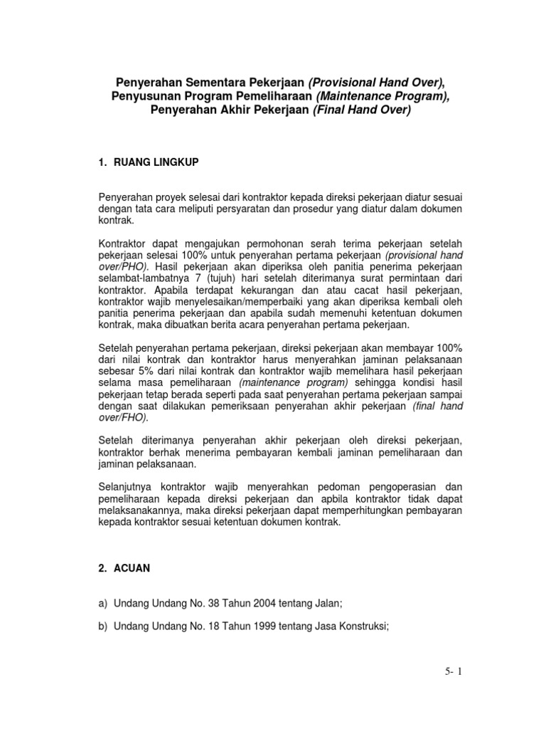 Pdf Penyerahan Sementara Pekerjaan Provisional Hand Over Penyusunan Program Pemeliharaan Maintenance Program Ridwan Baehaki Academia Edu