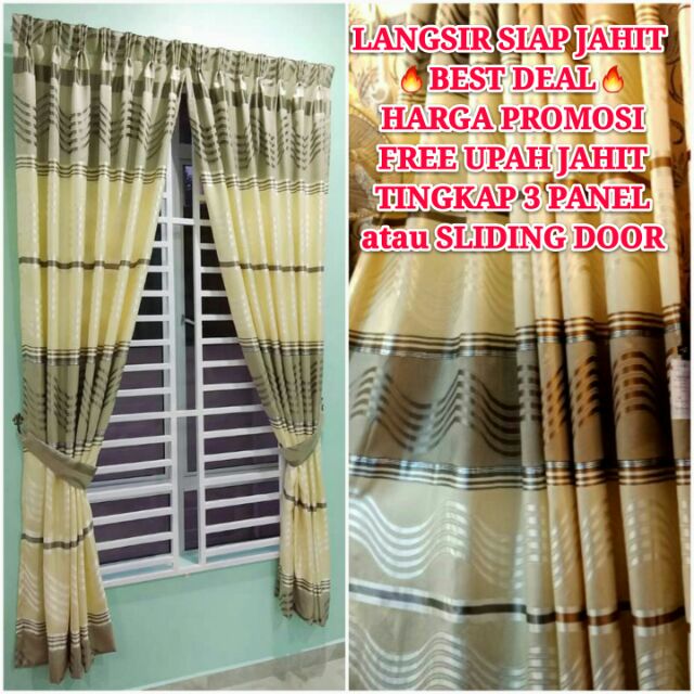 Ready Made Sliding Door 1set Curtain Langsir 2 3 Panel Tingkap Window Blackout Hotel Material Shopee Malaysia