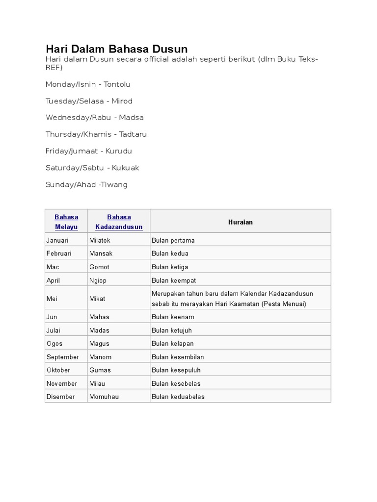 Bulan Dalam Setahun Hari Dlm Seminggu
