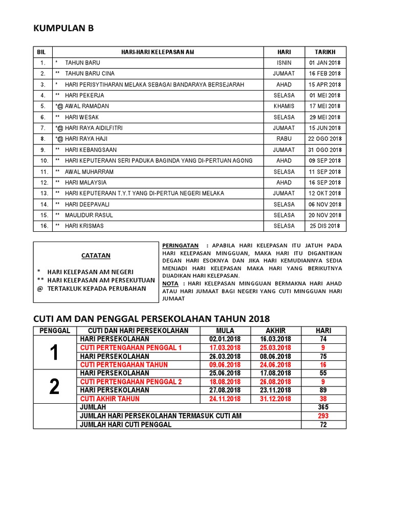 Bil Hari Hari Kelepasan Am Hari Tarikh Penggal Cuti Dan Hari Persekolahan Mula Akhir Jumlah Minggu