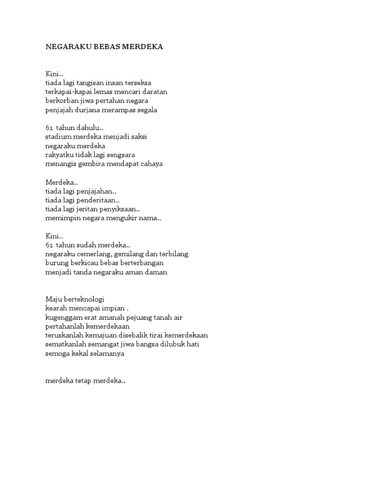 Negaraku Bebas Merdeka Negaraku Bebas Merdeka
