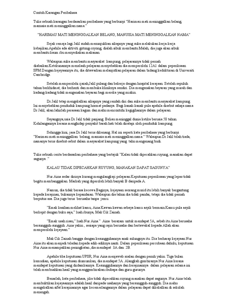 Contoh Karangan Peribahasa