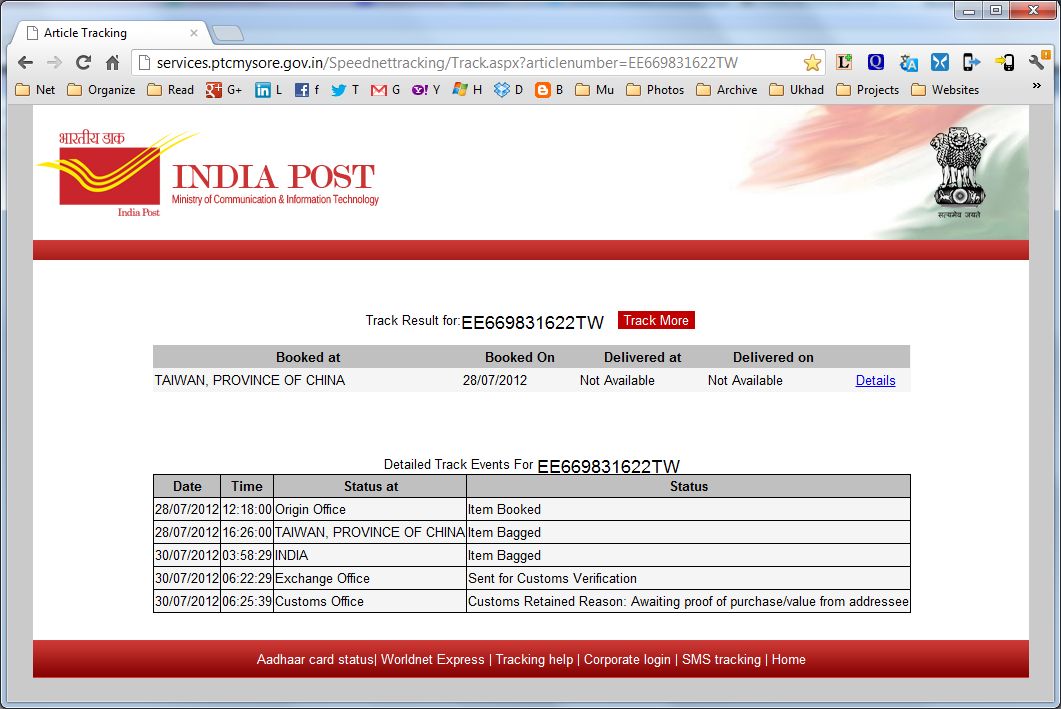 India Post Retention Reason Retained By Customs For Unspecified Reason Cg Protected De