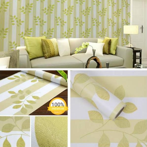 Wallpaper Sticker Dinding Walpaper Stiker Dekorasi Ruang Tamu Walpeper Setiker Tembok Kamar Tidur 3d Wps189 Garis Salur Line Daun Hijau Kuning Elegan Murah Lazada Indonesia