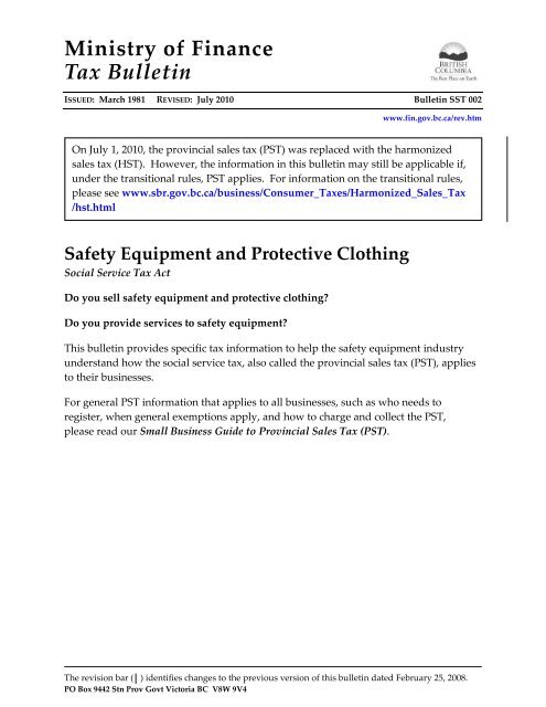 Bulletin Sst 002 Safety Equipment And Protective Clothing