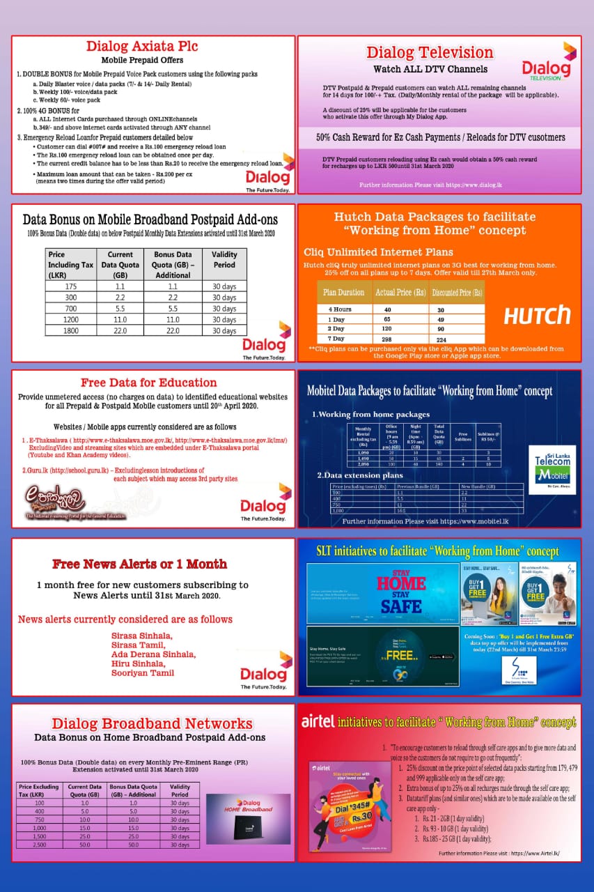 Trcsl On Twitter Following Is A Quick Summary Of All Special Offers Provided By Operators That Could Be Availed During This Period Of Action Against Covid 19 In Addition To The Concessions Of