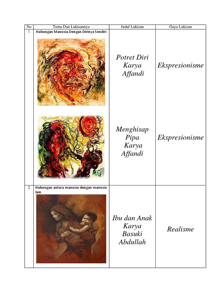 Tema Lukisam Judul Lukisan Gaya Lukisan Hubungan Antara Manusia Dan Dirinya Semdiri Brainly Co Id