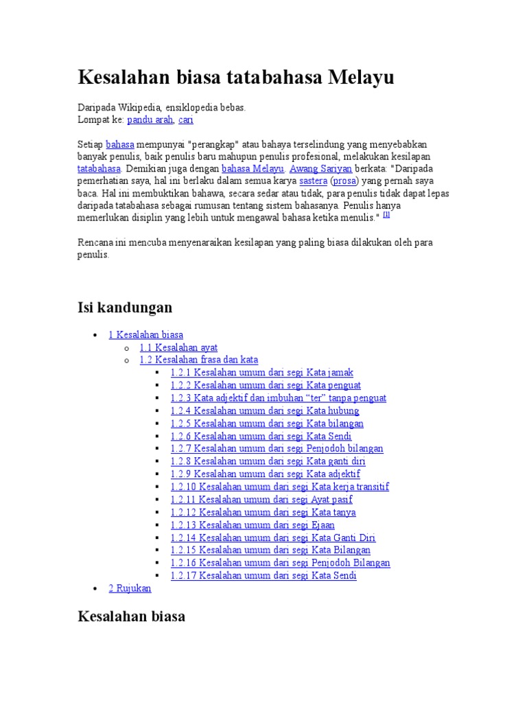 Kesalahan Biasa Tatabahasa Melayu Isi Kandungan