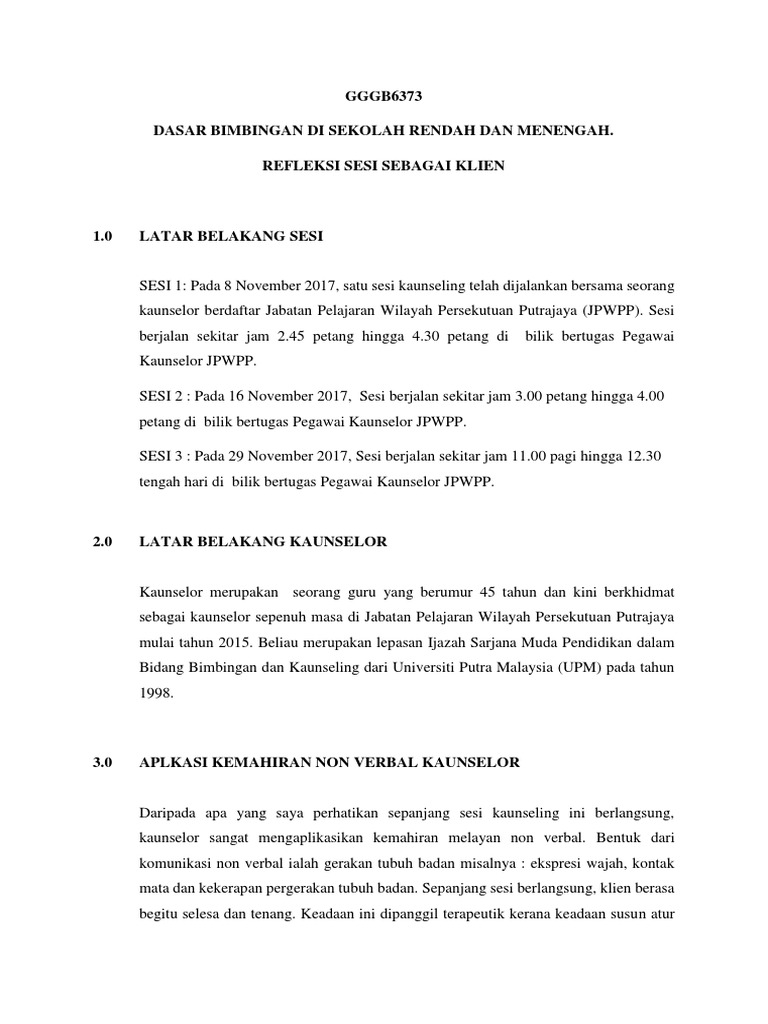 Gggb6373 Dasar Bimbingan Di Sekolah Rendah Dan Menengah Refleksi Sesi Sebagai Klien