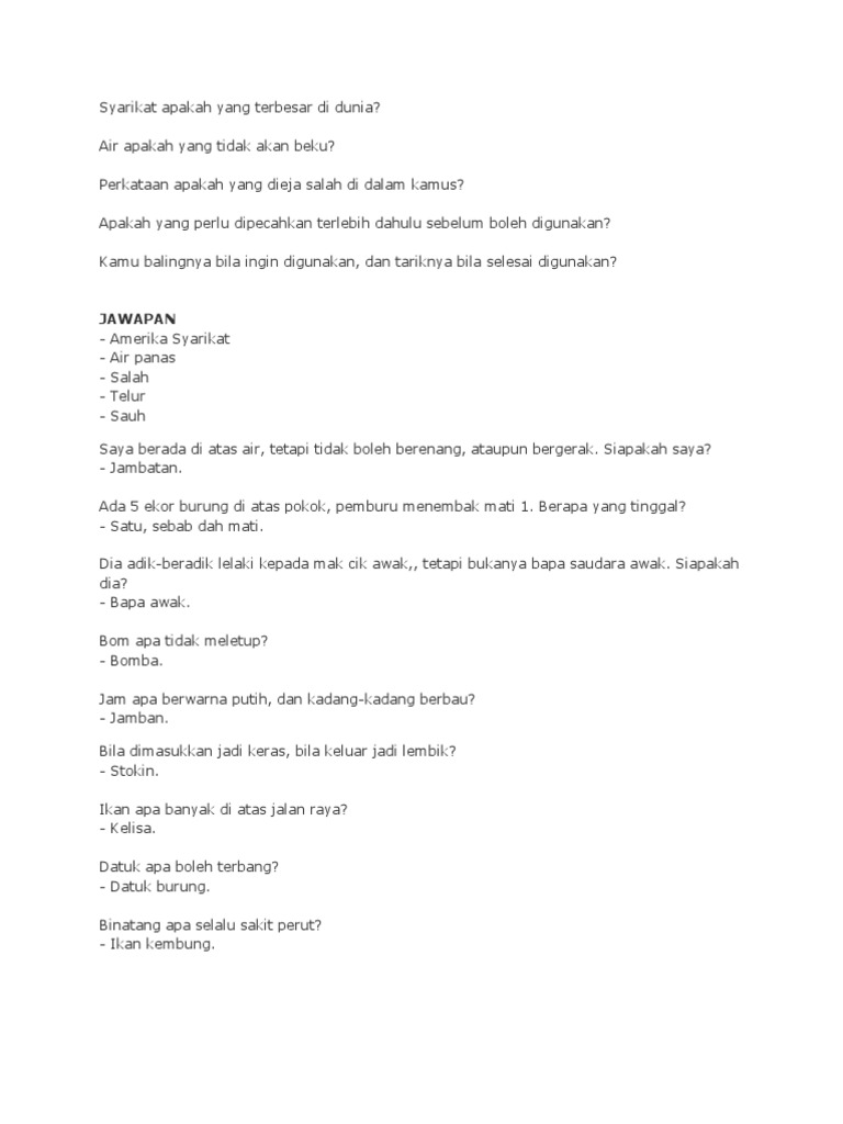 20 Teka Teki Lucu Dan Jawapan Tekateki S Blog