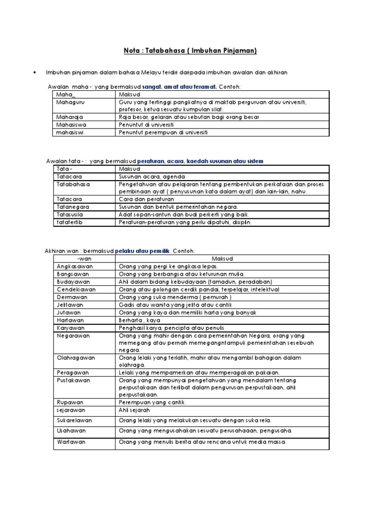 Imbuhan Pinjaman Dalam Bahasa Melayu Terdiri Daripada Imbuhan Awalan Dan Akhiran