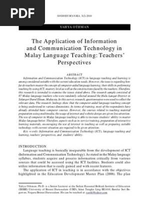 The Application Of Information And Communication Technology In Malay Language Teaching Teachers Perspectives Educational Technology Language Education
