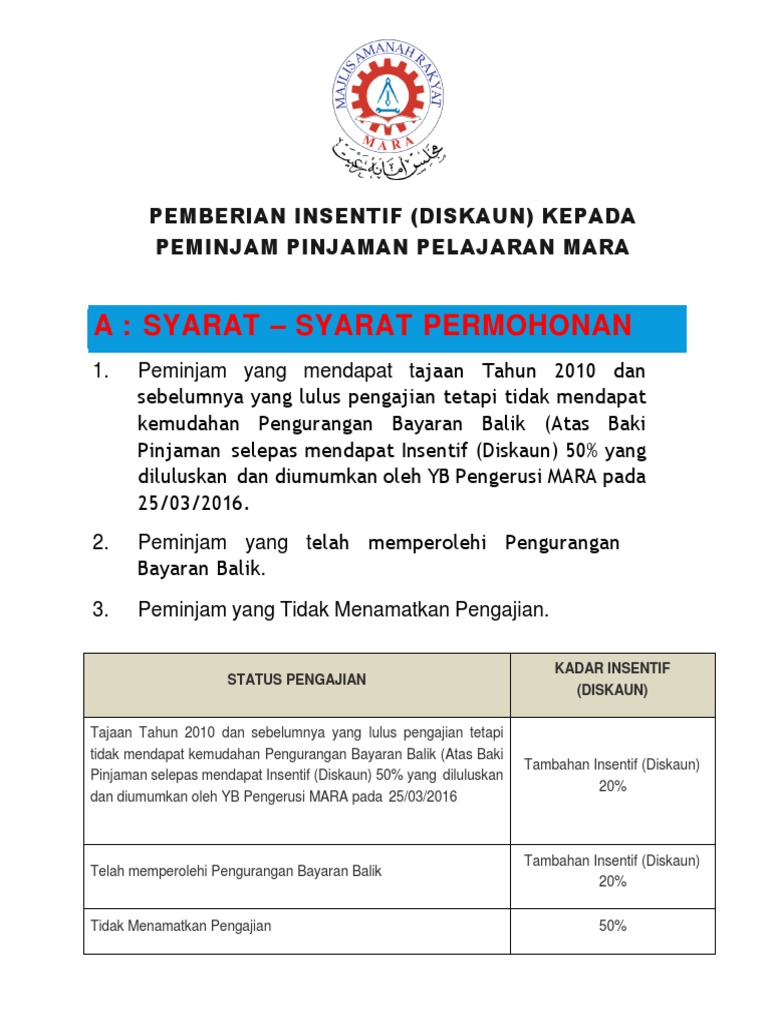 M H I B H I B L O G Insentif 50 Bagi Pinjaman Mara