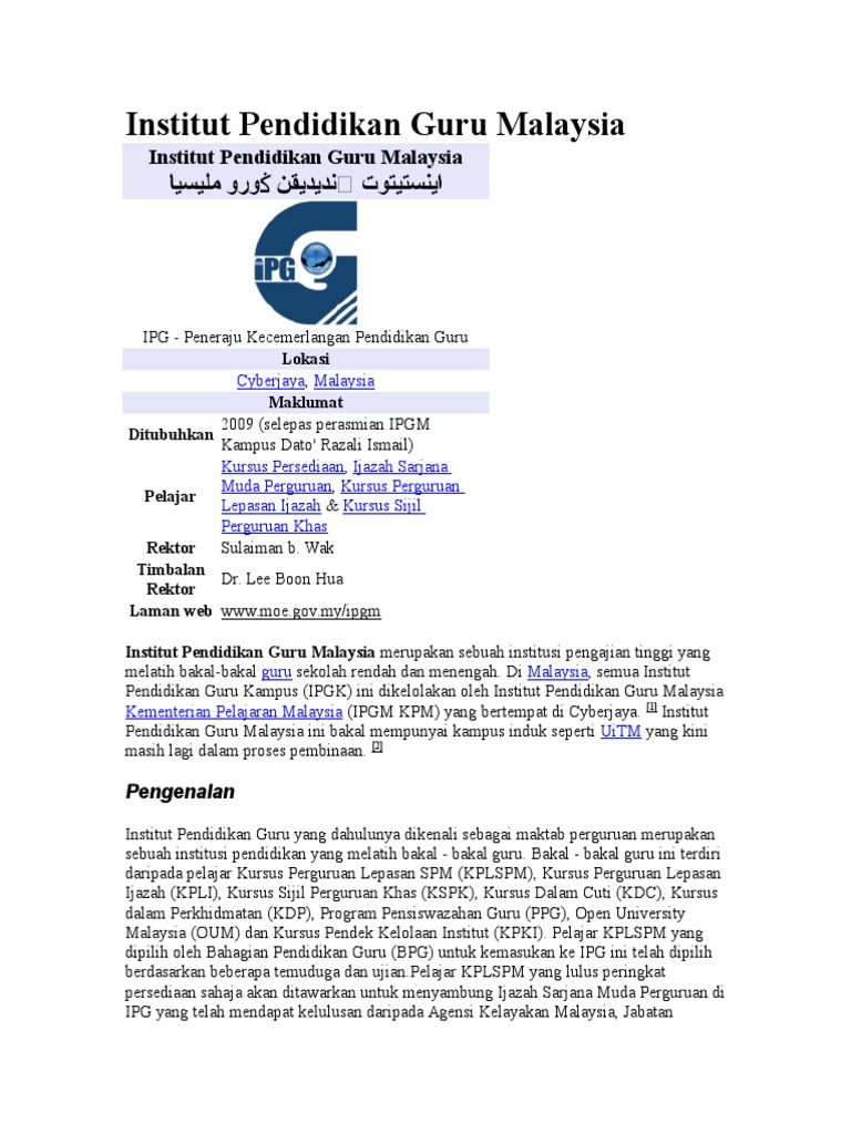 Institut Pendidikan Guru Malaysia Cyberjaya Cyberjaya Selangor
