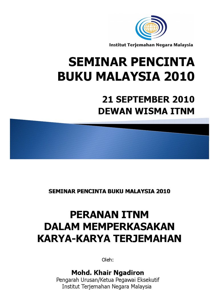 Peranan Itnm Dalam Memperkasakan Karya Karya Terjemahan Oleh Encik Mohd Khair Ngadiron