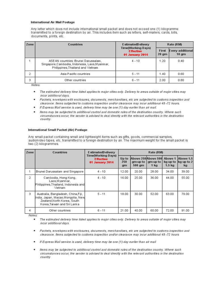 International Air Mail Postage Charges In Pos Malaysia Mail Freight Transport