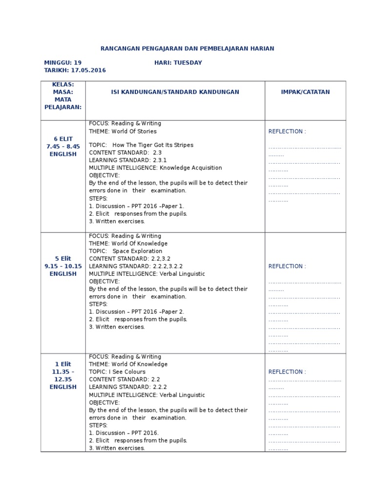 Lesson Plan 2013 Week 1 English Language Lesson Plan