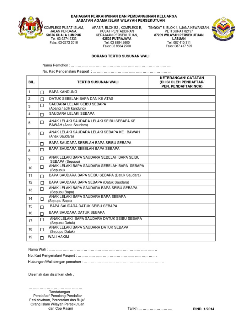 Borang Tertib Susunan Wali Dicetak Menggunakan Kertas A4 Berwarna Putih Pdf