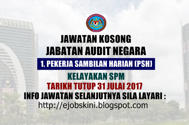 Jawatan Kosong Jabatan Audit Negara 31 Julai 2017