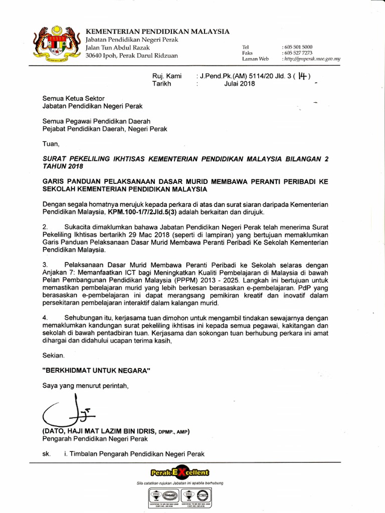 Pendidikan Negeri Perak Jalan Tun Abdul Razak 30640 Ipoh Perak Darul Ridzuan Telefon 05 501 5000 Kami 31 15 Januari 2017 Tarikh Pengetua Sekolah Menengah Guru Besar Sekolah