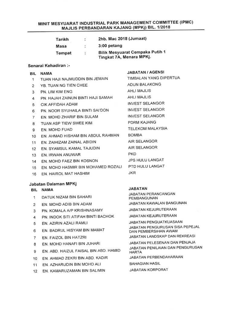 Minit Mesyuarat Ipmc Mpkj Bil1 2018