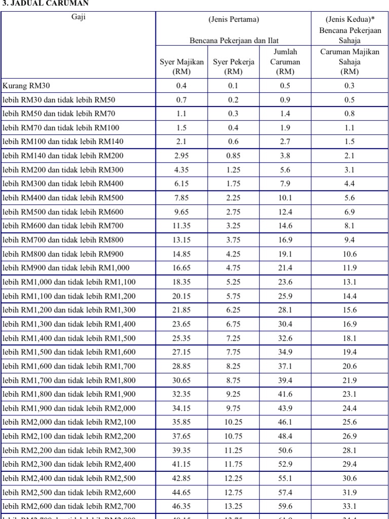 Jadual Caruman Perkeso