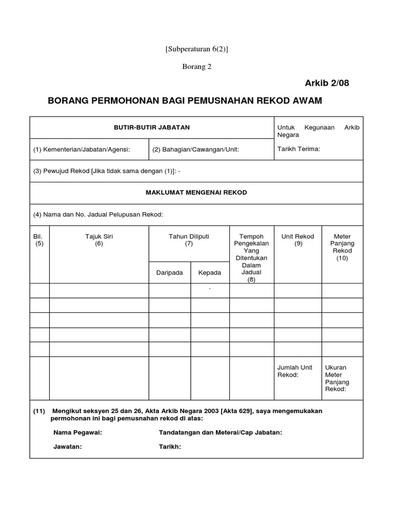 Doc Lampiran 2 Contoh Arkib 2 08 Borang Permohonan Bagi Pemusnahan Rekod Awam Manisah Abdullah Academia Edu